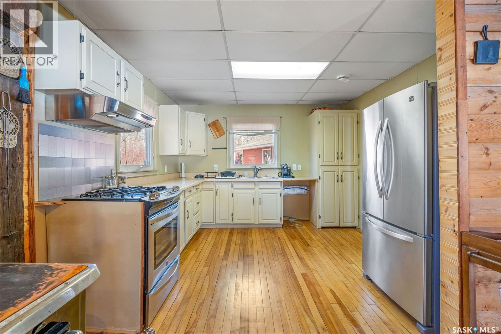 Escape to your own private lakefront retreat with this charming year-round cabin located at beautiful Round Lake. Nestled in a peaceful Co-op community, this property offers stunning views, cozy comfort, and everything you need to enjoy lake life in every season. The home features approximately 1,242 square feet of living space, including 864 square feet on the main floor and additional space on the upper level. There are three bedrooms, including a primary bedroom with a wood-burning fireplace, and a full three-piece bathroom on the main floor.The community was built around three guiding values: fostering a welcoming and social atmosphere among residents and their guests, maintaining the property as a peaceful and affordable retreat, and preserving the natural surroundings to protect local wildlife and birds. In keeping with these values, the use of motorboats, ATVs, and snowmobiles is not permitted. If you’re seeking a serene lakefront experience and a slower pace away from the busier northern lakes, this could be your ideal getaway. The sunroom provides a relaxing spot to take in the lake views, while the wraparound deck is perfect for entertaining or unwinding outdoors. A detached 20 by 20 foot garage offers storage and workspace, and the property also includes a shed and outhouse for added convenience. Appliances include a natural gas stove, fridge, wine cooler, microwave, washer, dryer, and hood fan. The home is heated with a natural gas forced-air furnace and has an electric water heater. Water is supplied by eight 1,000-litre holding tanks, and the lot offers excellent privacy with approximately 60 feet of brush separating it from neighboring properties. (id:4069)