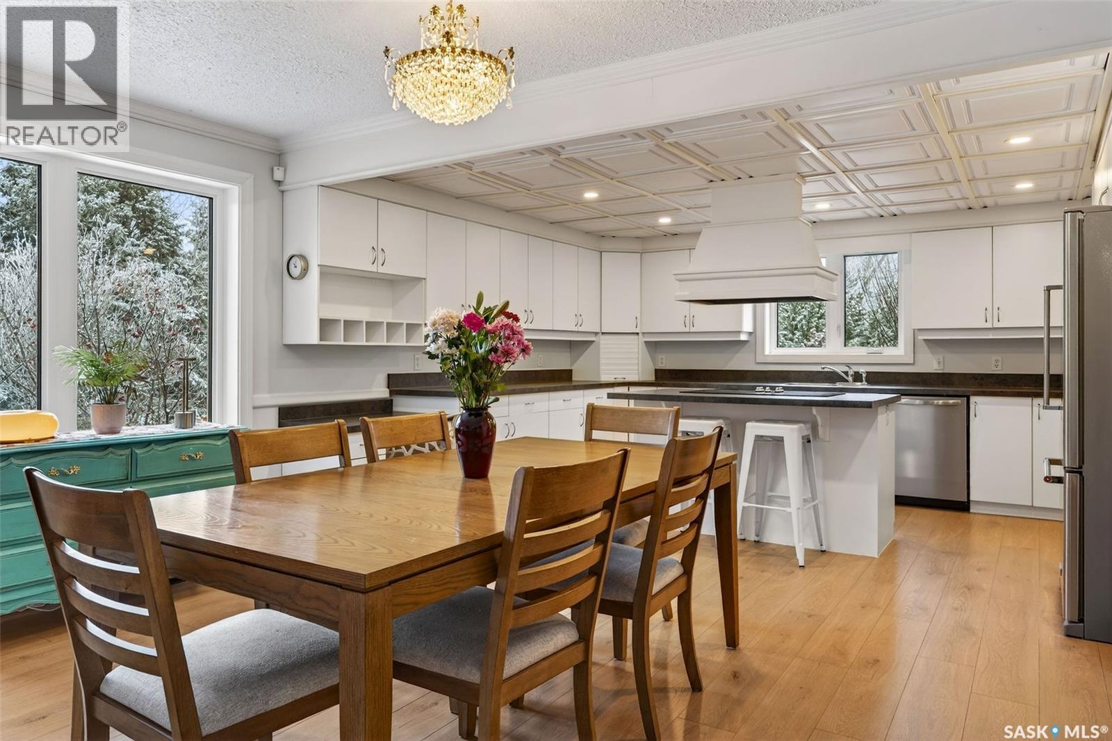 Just five minutes northeast of Prince Albert, this exceptional 1840 square foot extensively renovated raised bungalow with walkout basement sits on 7.48 beautifully treed acres, offering the privacy of country living with the convenience of a quick commute to the city. Fully developed and extensively updated, this five bedroom, three bathroom home is move-in ready and designed for both family living and entertaining. The main floor welcomes you with a massive front entry featuring built-in seating, ideal for acreage life. The bright, spacious layout includes a large kitchen with island and abundant cabinetry, flowing into the dining area with sliding doors leading to a three season sunroom and massive back deck overlooking the 18' x 32' above ground heated pool. The living room is anchored by a cozy gas fireplace, creating a warm and inviting gathering space. A four piece bathroom and three generously sized bedrooms complete the level. The primary suite features a walk-in closet, second closet, and private four piece ensuite. The fully developed walkout lower level offers excellent additional living space with a mudroom entry, large rec room with slate pool table included, games area, cold room, storage, two additional bedrooms (one currently used as an large office or family room), and laundry/utility area. Recent upgrades include new flooring throughout (2025), windows (2022), shingles on the home and triple detached garage (2025), solar panels (2026), exterior doors (2025), rebuilt furnace (2025), new water heater and water softener (2025), and serviced central air, sunroom & chain link fence (2016). Outside feels like your own private park with mature trees, an orchard with apple, plum and chokecherry trees, an 18 × 33 above ground pool with natural gas heater, triple detached garage, fenced yard, huge custom firepit and tree house and close access to quad trails. As per the Seller’s direction, all offers will be presented on 03/18/2026 5:30AM. (id:4069)